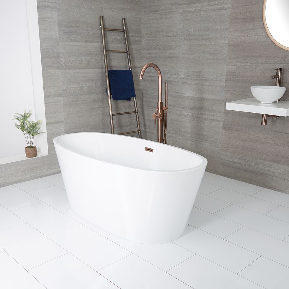 Con un diseño contemporáneo y una elegante forma ovalada, la bañera en isla de 1595mm x 740mm de la gama Ashbury garantiza agregar la pieza central a su cuarto de baño.