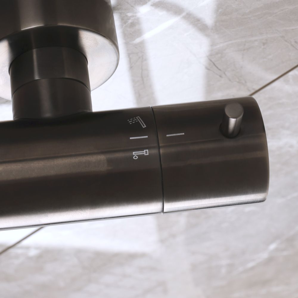 Embellezca su cuarto de baño y disfrute de una duchas inolvidable gracias a este conjunto de ducha con mezclador de ducha termostático de la gama Otto que se caracteriza por su elegante acabado de color níquel negro que viene completo con un caño erogador integrado que es ideal para llenar su bañera.