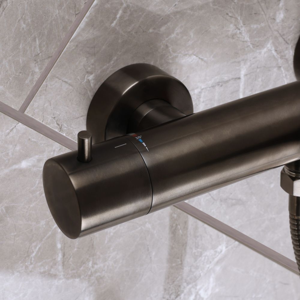 Este conjunto de ducha termostático ha sido fabricado en latón sólido y gracias a su diseño garantiza aportar un toque de lujo y diseño a su baño. Cuenta con un elegante acabado de color níquel negro que garantizan agregar un toque de estilo al instante. La llave de ducha termostática en barra le proporciona un control sin esfuerzo y si el agua excede la temperatura prestablecida la llave de ducha se cerrará automáticamente, gracias al dispositivo antiquemaduras integrado en el mezclador de ducha, para asegurar que pueda disfrutar de una ducha extremadamente segura.
