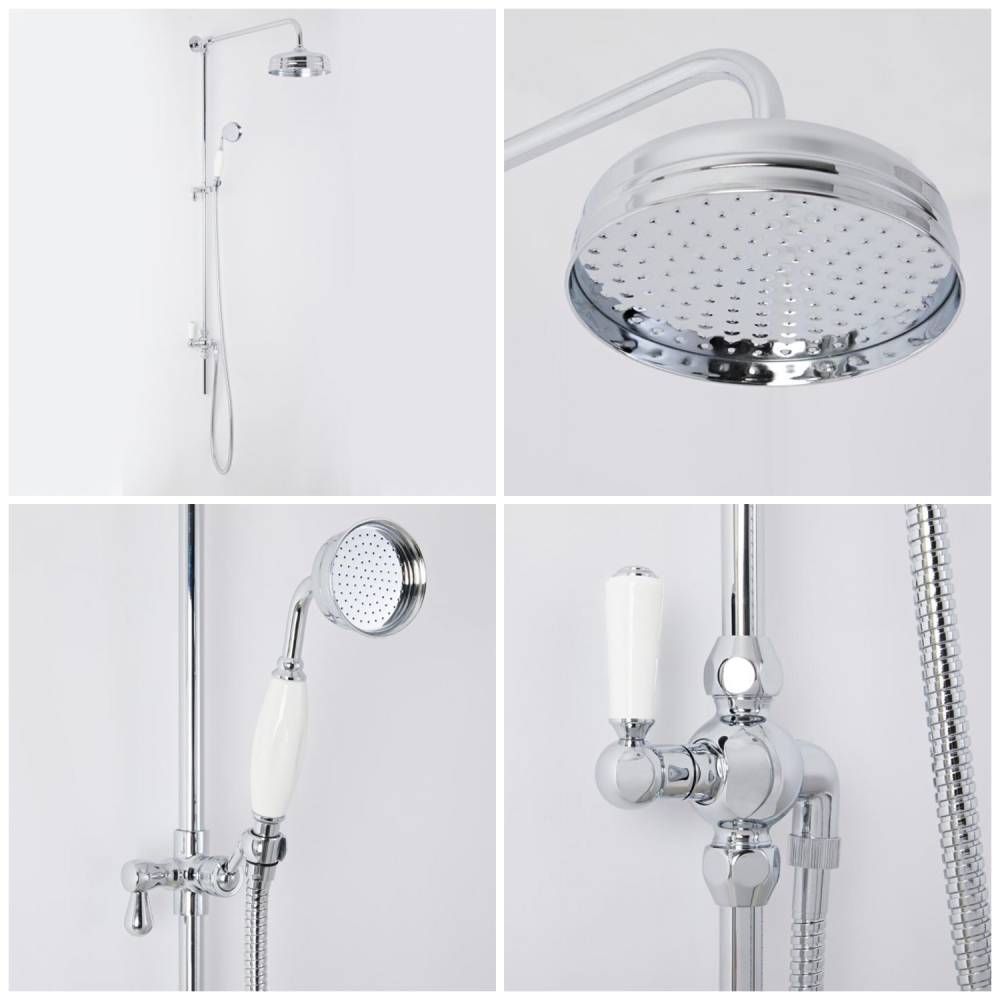 Esta columna de ducha se caracteriza por su elegante diseño tradicional y viene completa con una alcachofa de ducha redonda, una columna de ducha en latón sólido y un telefonillo de ducha que es regulable en altura. Incluye un desviador integrado para que pueda alternar entre la alcachofa de ducha y el telefonillo. La barra deslizante tiene un diámetro de 18mm y ha sido especialmente diseñada para ser combinada con un mezclador de ducha expuesto, disponible en nuestra página.