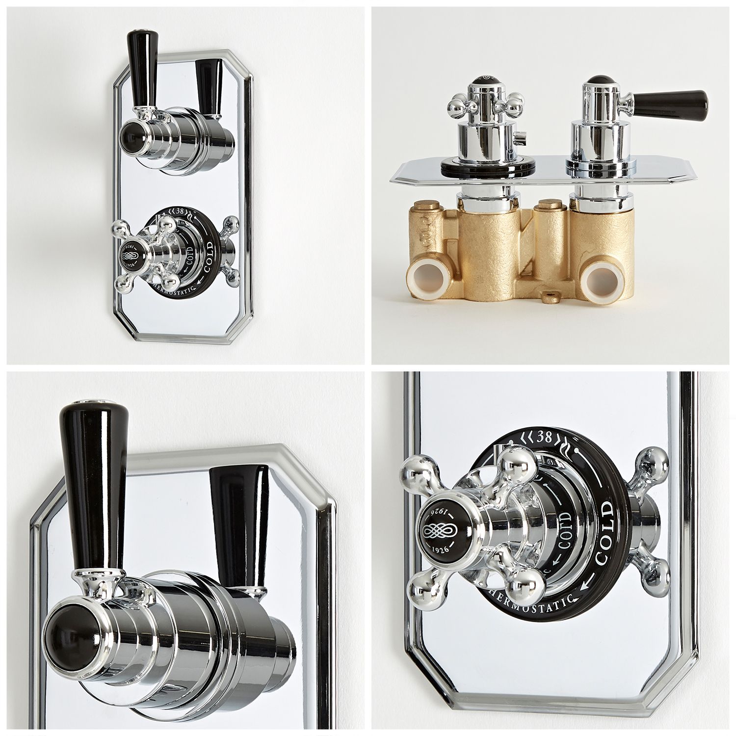 El mezclador de ducha termostático de 2 funciones con desviador caracteriza un elegante diseño clásico y ha sido realizado de sólido con un acabado cromado que es extremadamente duradero y que sale a juego con cualquier tipo de decoración. Los pomos cerámica negra agregan un toque retro a su cuarto de baño y las manijas le permiten controlar el paso del agua de manera extremadamente simple. La llave de ducha termostática dispone de un dispositivo antiquemaduras integrado para prevenir quemaduras accidentales en la ducha, ofreciéndole una ducha elegante y segura.