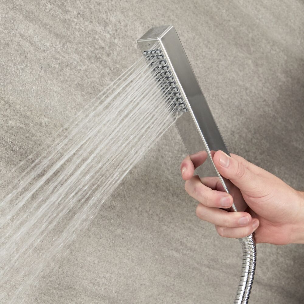 Cree un look moderno en su cuarto de baño con este elegante conjunto de ducha de 2 funciones con desviador. Caracteriza un acabado cromado y viene completo con un mezclador de ducha de dos funciones, una alcachofa de ducha cuadrada de 300mm y un telefonillo con acabado cromado. El mezclador de ducha ha sido realizado de latón para asegurar gran durabilidad y dispone de controles que son muy simples de controlar.