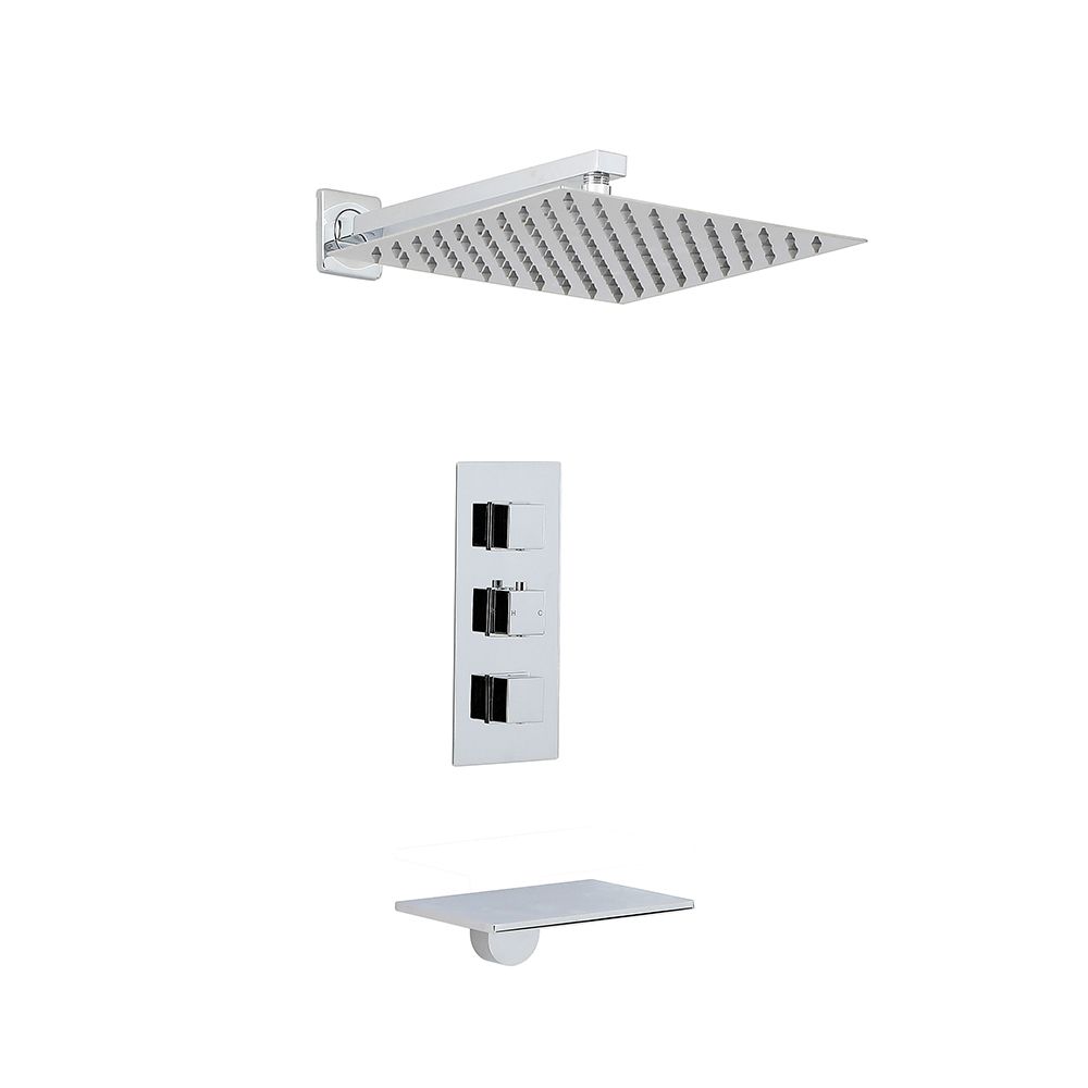 Conjunto de Ducha con Mezclador de Ducha Termostático Cuadrado de 2 Salidas con Desviador Cromado con Alcachofa de Ducha Cuadrada de 300mm y Llenador de Bañera- Kubix