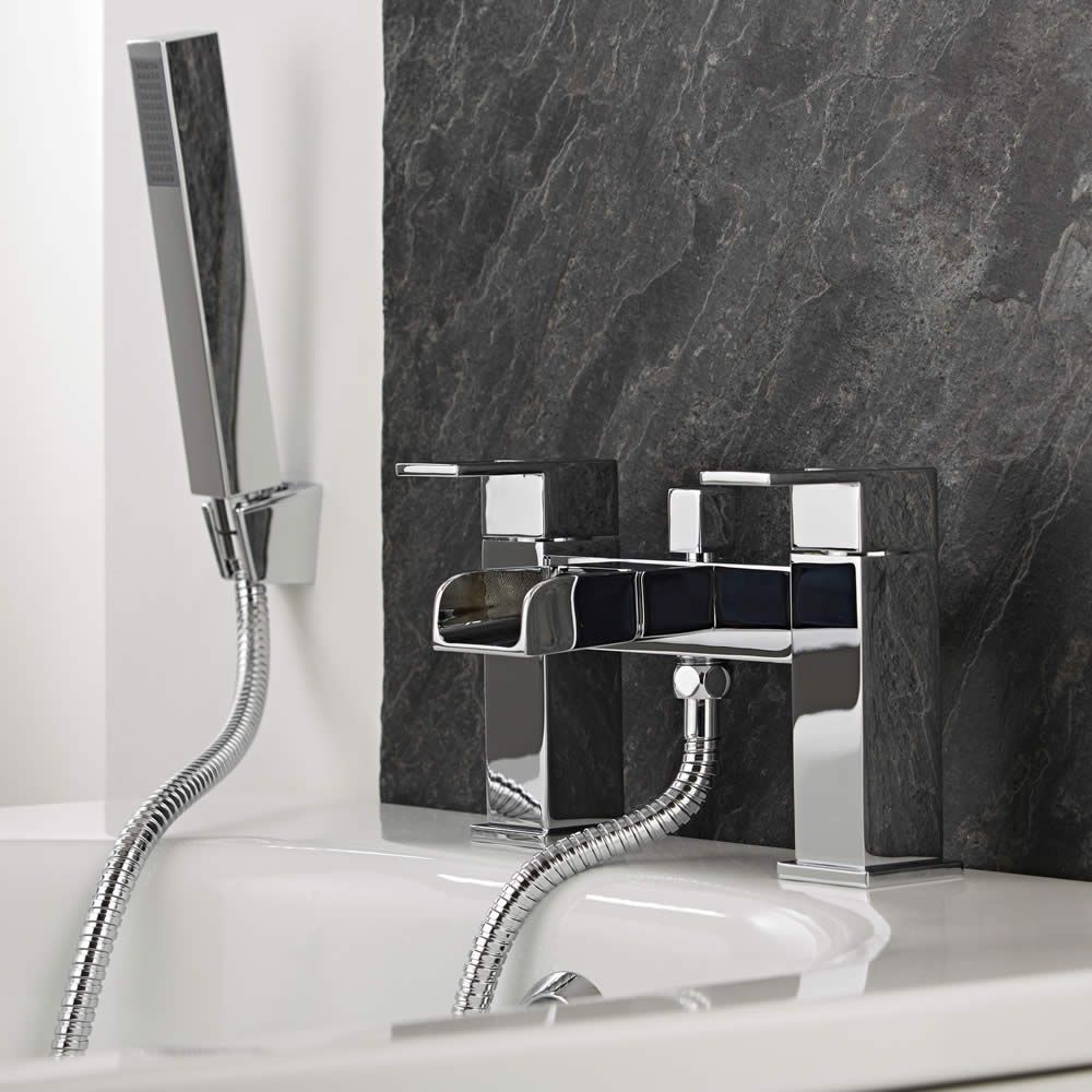 Grifería de Bañera Moderna a Cascada en Latón Cromado con Ducha Mano y Soporte Mural - Parade
