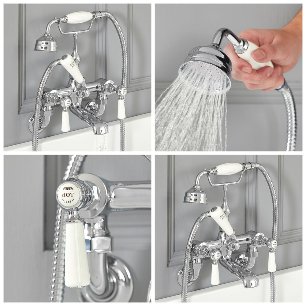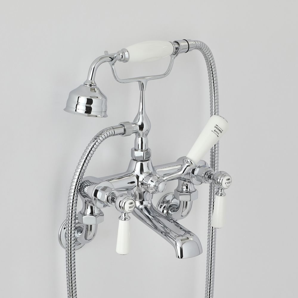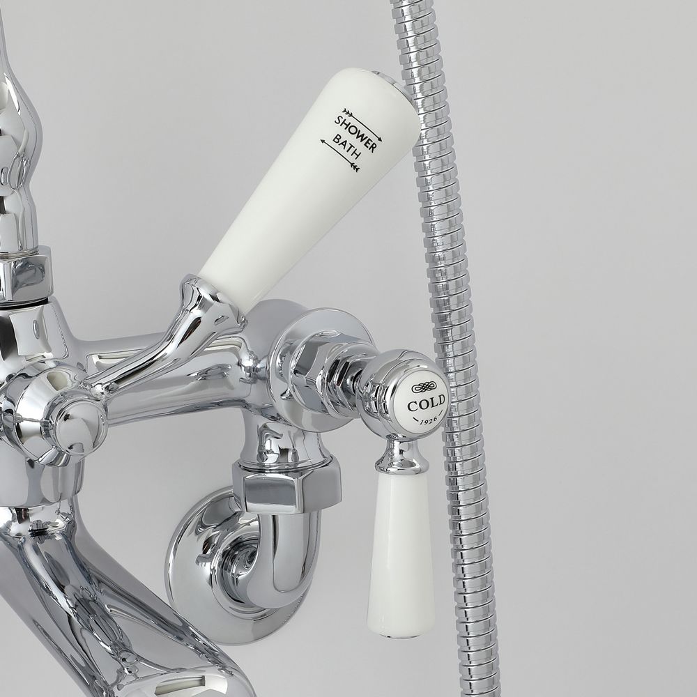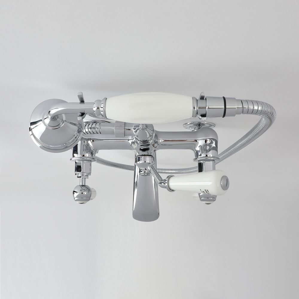 Grifo Mezclador de Pared para Bañera Estilo Tradicional Acabado Cromado y Blanco con Manija a Palanca - Elizabeth