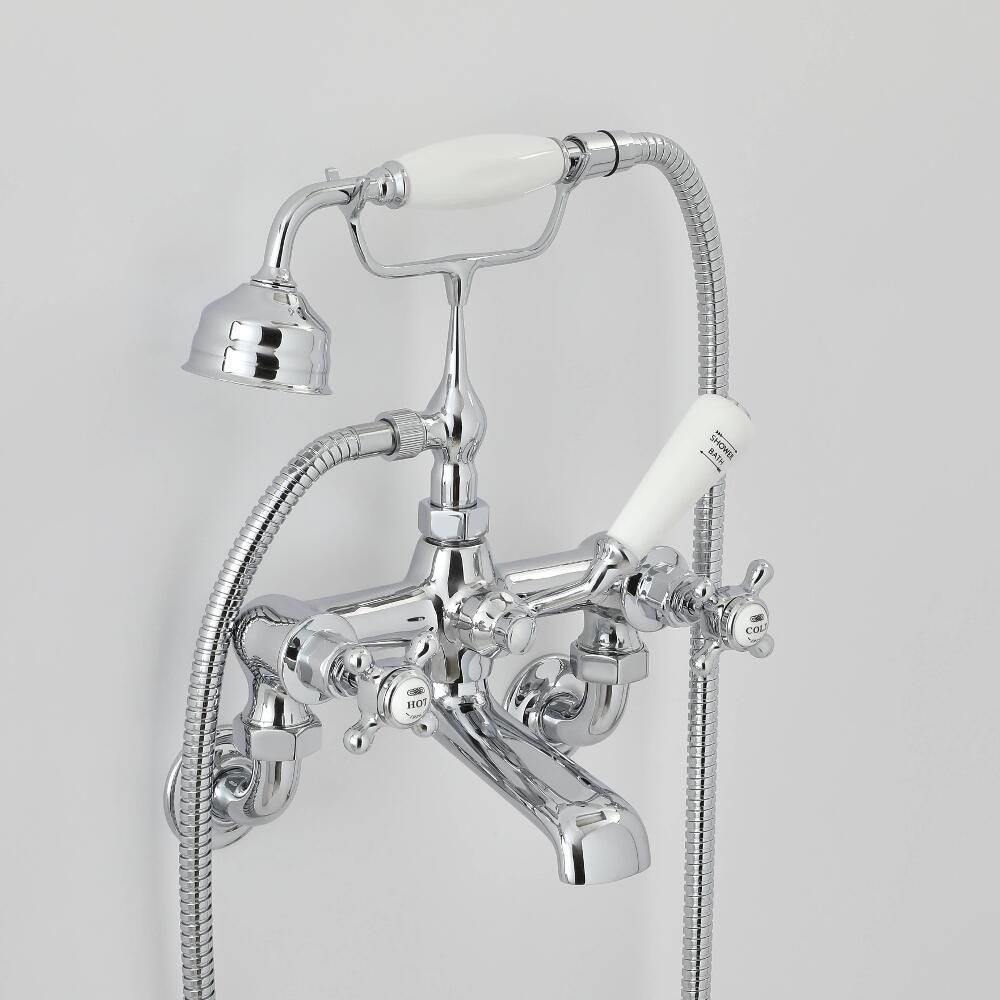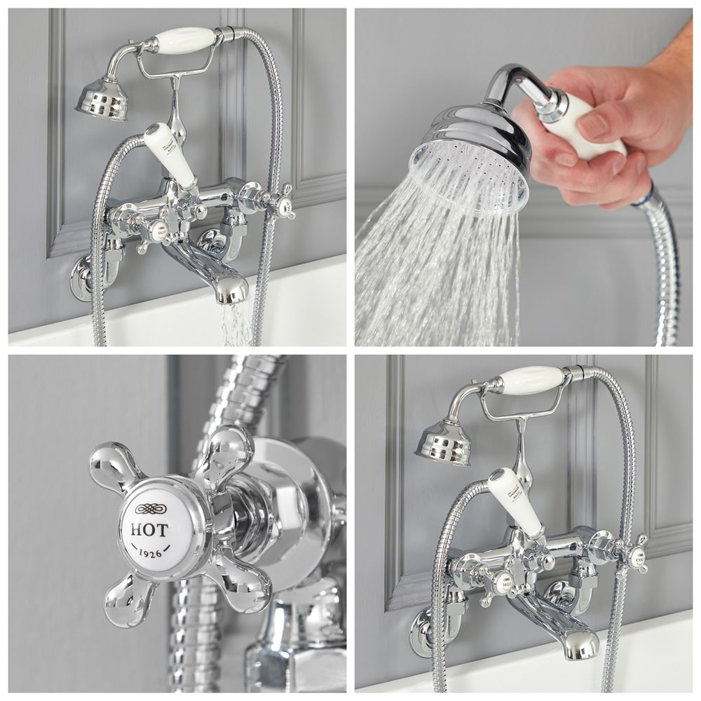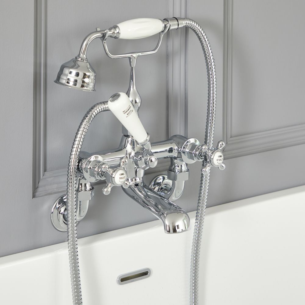 Grifo Mezclador de Pared para Bañera Estilo Tradicional Acabado Cromado y Blanco con Manijas en Cruceta - Elizabeth