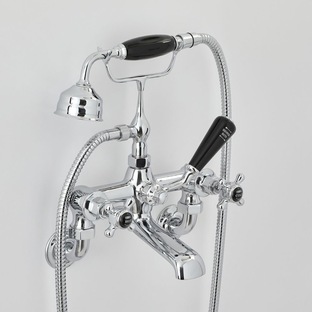 Grifo Mezclador de Pared para Bañera Estilo Tradicional Acabado Cromado y Negro con Manijas en Cruceta - Elizabeth
