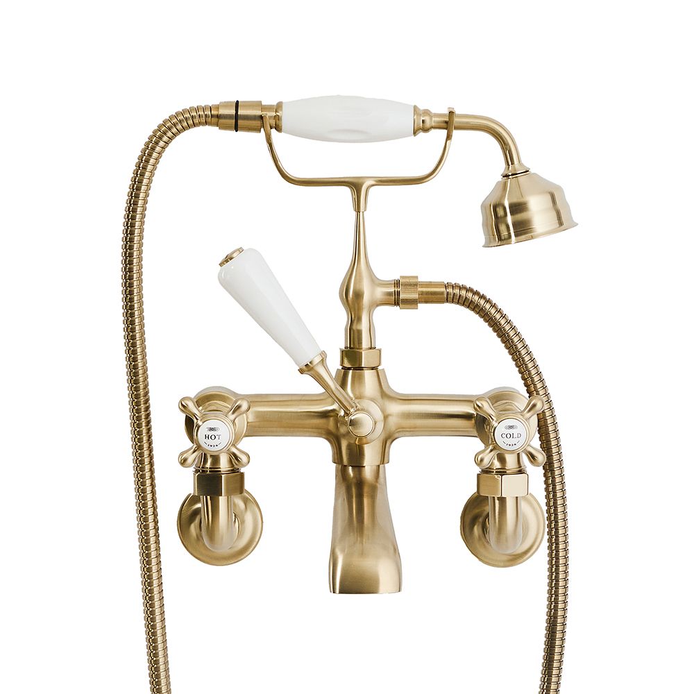 Grifo Mezclador de Pared para Bañera Tradicional Acabado con Manijas en Cruceta - Oro Satinado - Elizabeth