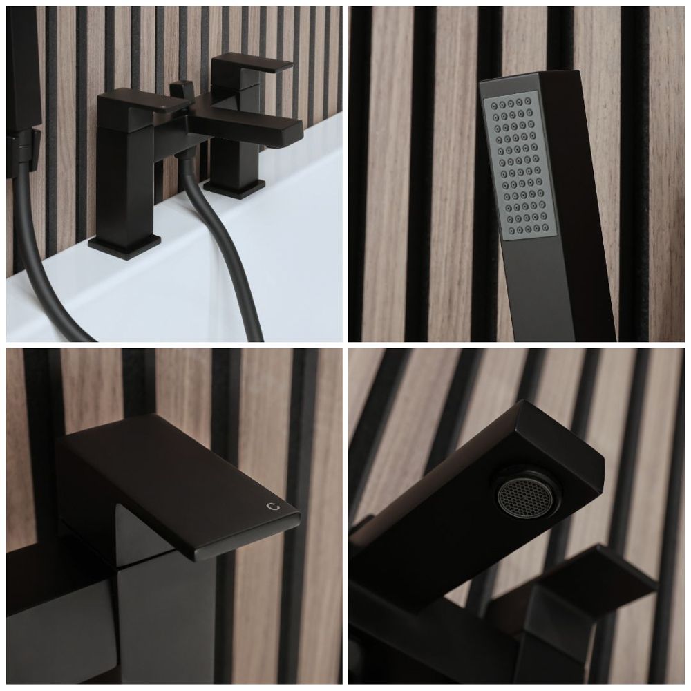 Este grifo mezclador para bañera se caracteriza por sus elegantes líneas cuadradas y por su resistente acabado de color negro opaco para garantizar crear un look muy llamativo. Ha sido fabricado en latón para garantizar proporcionarle con la máxima durabilidad.