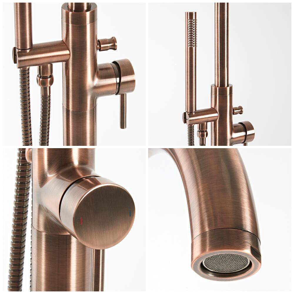 Grifo Mezclador Moderno para Bañera Exenta Completo con Telefonillo de Ducha - Bronce Cepillado - Amara