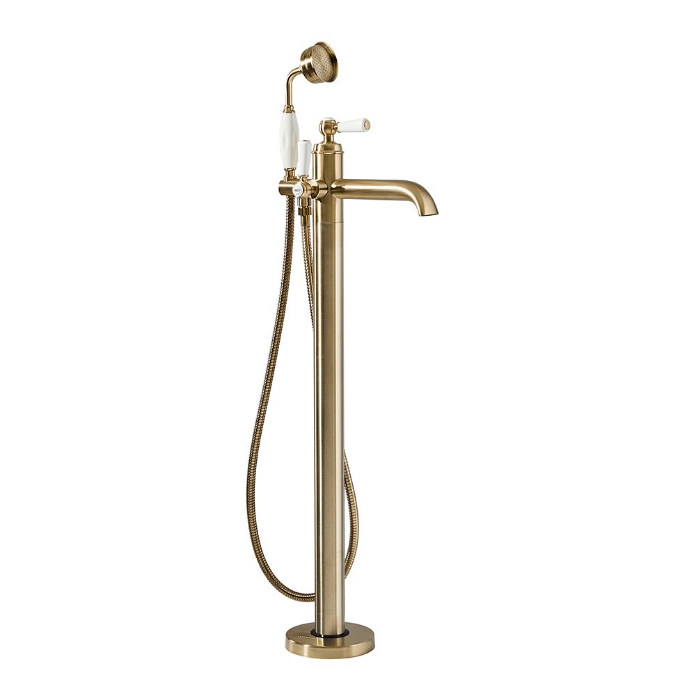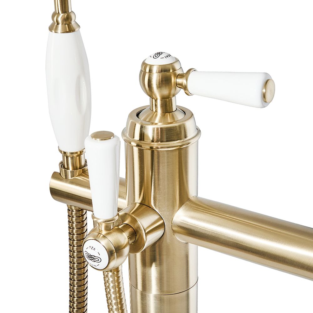 Grifo Mezclador para Bañera Exenta Tradicional con Telefonillo - Oro Satinado - Elizabeth