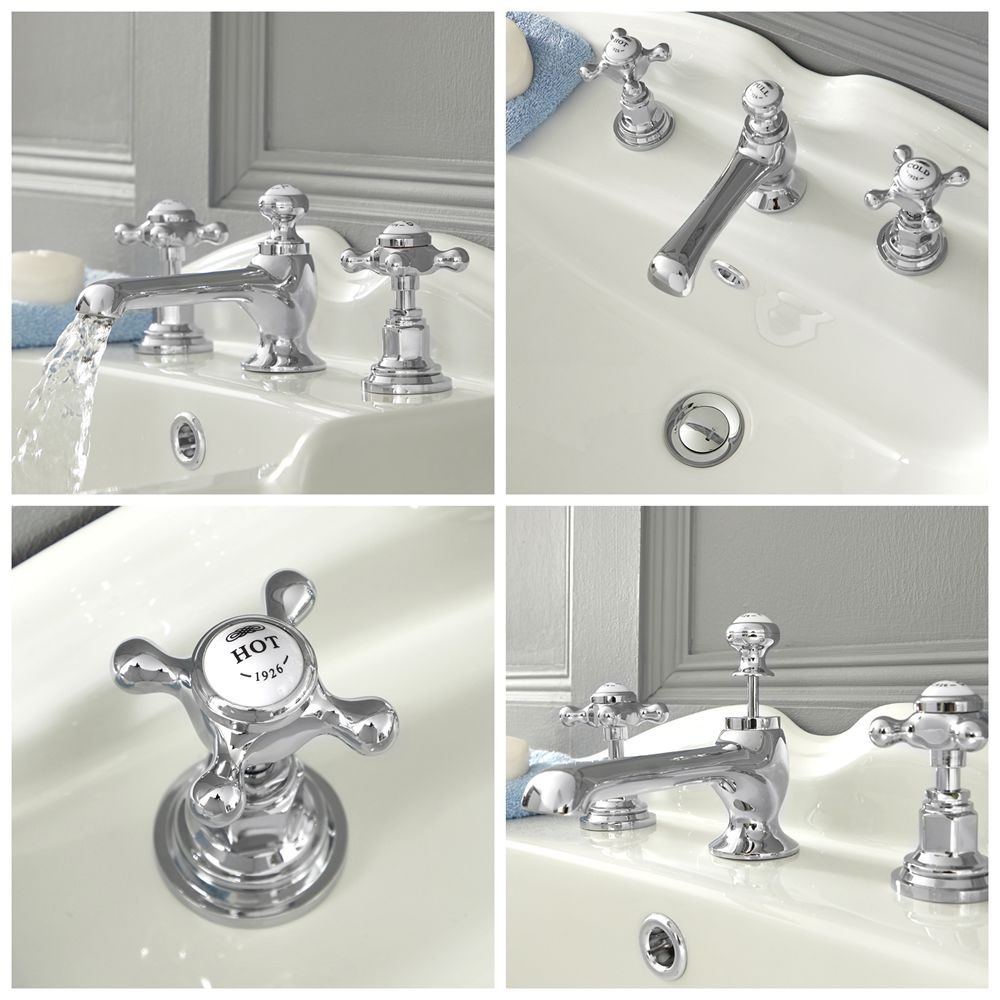 Grifo Mezclador para Lavabo de 3 Agujeros Estilo Tradicional Color Cromado y Blanco Manijas en Cruceta - Elizabeth