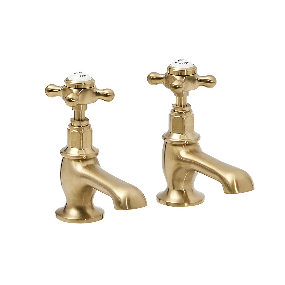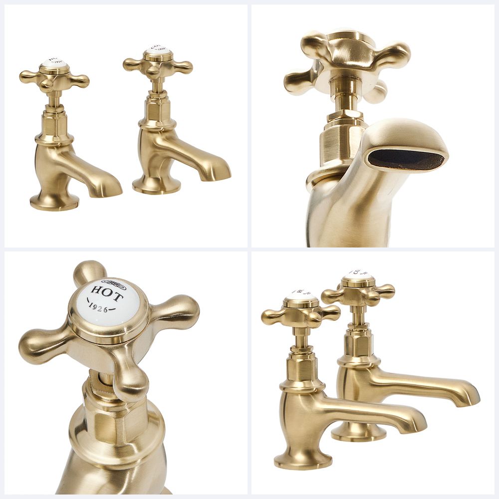 Grifos Individuales para Lavabo Tradicionales con Manijas en Cruceta - Oro Satinado - Elizabeth