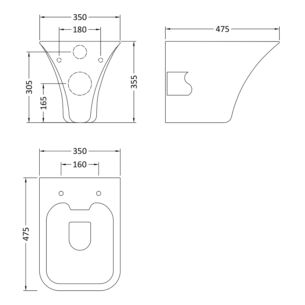 - Dimensiones: anch. 350mm x prof. 475mm x alt. 355mm