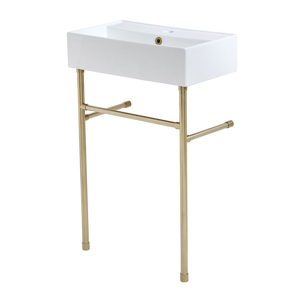 Cree un cuarto de baño contenporáneo y esbelto gracias a este elegante lavabo con consola en estilo moderno de la gama Halwell que viene completo con la estructura metálica y el lavabo.
