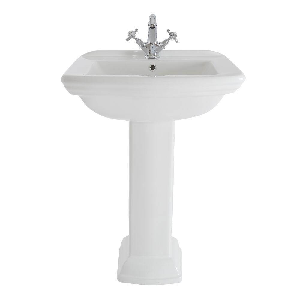 Lavabo de 1 Agujero con Pedestal de Cerámica Blanca Tradicional con Diseño Cuadrado - Chester
