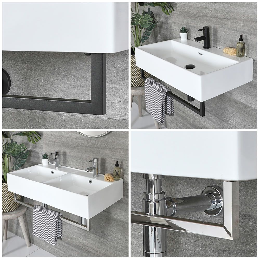 El lavabo suspendido de la gama Elswick está disponible en una variedad de distintos tamaños para asegurar adaptarse perfectamente a cualquier tipo de espacio. Incluye una barra toallero disponible con acabado negro o cromado para asegurar adaptase perfectamente a su decoración – simplemente necesitará seleccionar el tamaño del lavabo y el acabado de la barra porta toallas del menú desplegable.