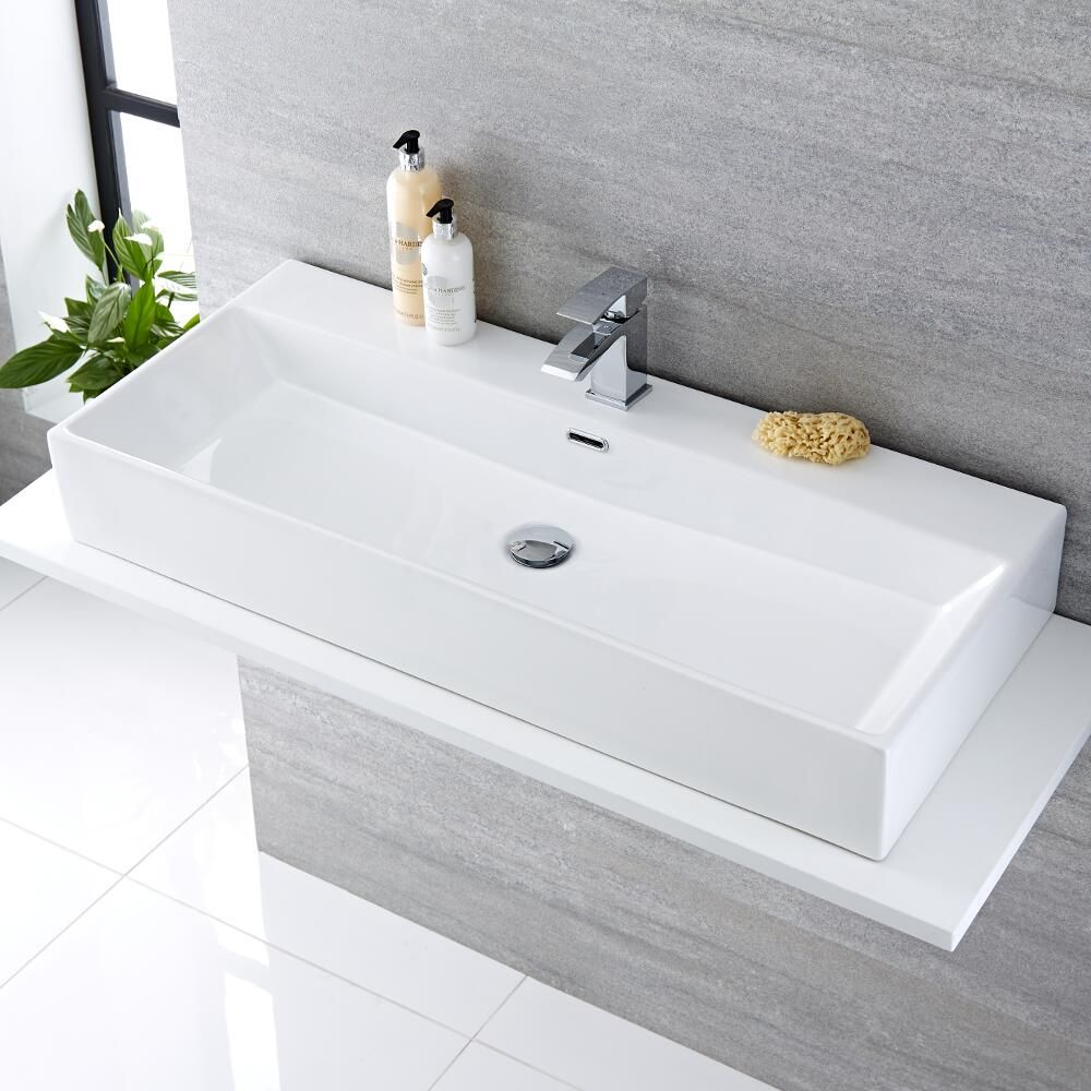 Lavabo Sobre Encimera Rectangular de Cerámica 1000x420mm - Sandford