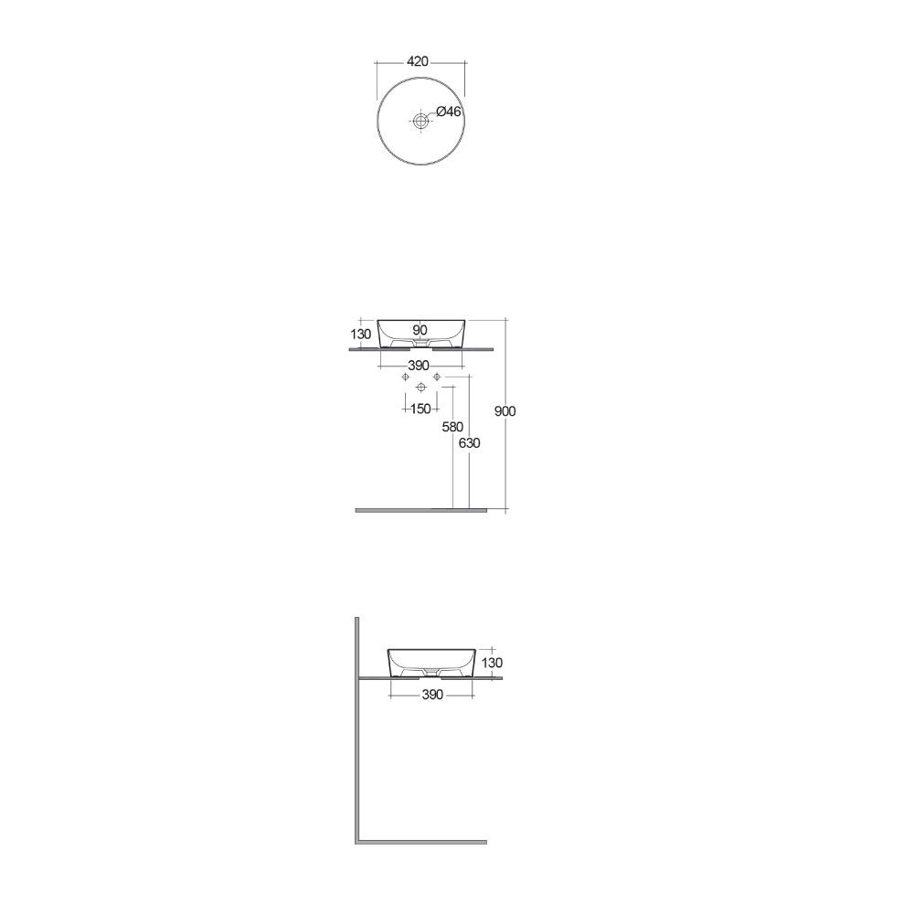 Este lavabo no dispone de agujeros para la grifería, y por ello, puede ser combinado con cualquier grifo mural o grifo alto para lavabo, dependiendo del look que desee crear.