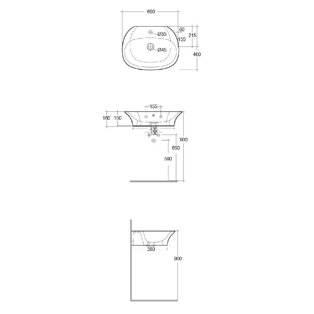 Obtenga un cuarto de baño elegante y moderno de manera sencilla gracias a este lavabo suspendido de 600mm x 460mm de la colección RAK Sensation x Hudson Reed.