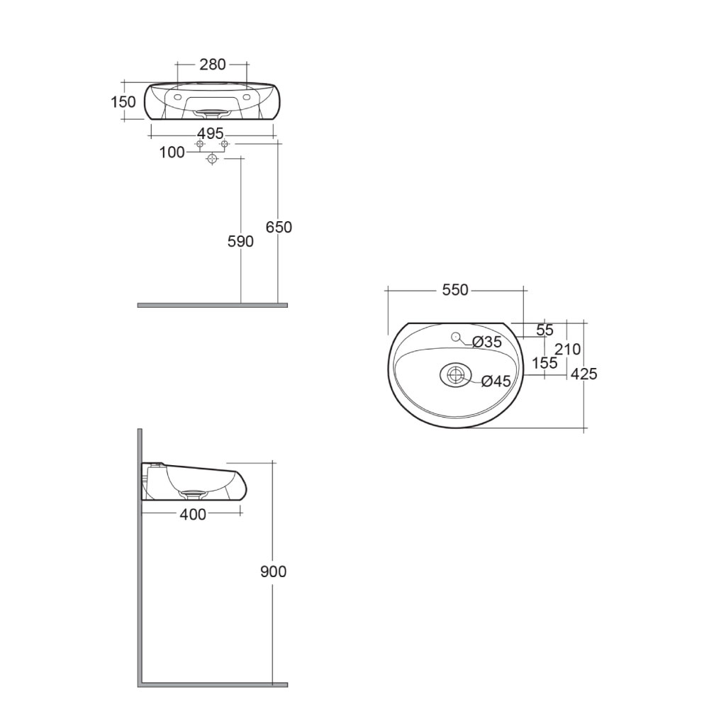 Lavabo Suspendido Moderno Blanco Opaco - 550mm x 425mm (1 Agujero para la Grifería) - RAK Cloud x Hudson Reed