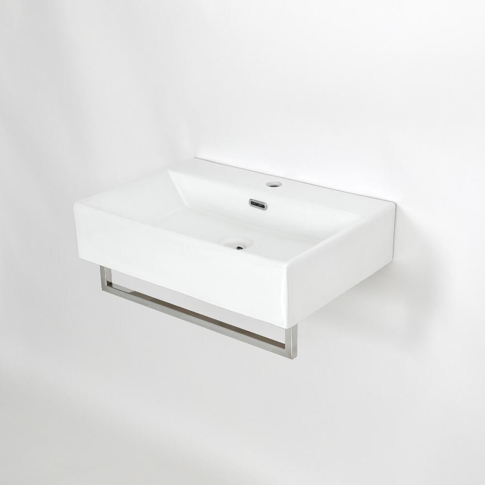Lavabo Suspendido Moderno Rectangular Blanco 605mm x 430mm con Barra Porta Toallas Cromada- Sandford