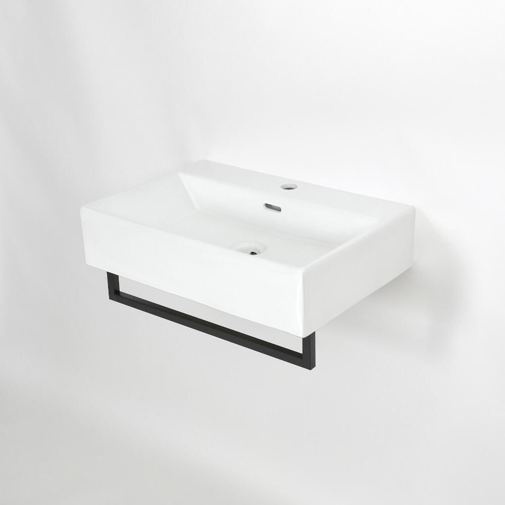 Combinando estilo y función, este caracteriza elegantes líneas pulidas y un diseño suspendido que es ideal para crear un look minimalista y la ilusión de un espacio más grande. Fabricado con cerámica de primera calidad, el lavabo cuenta con un resistente acabado con esmaltado de color blanco que es extremadamente fácil de limpiar y dispone de un agujero para la grifería, por ello es compatible con toda nuestra gama de grifería de lavabo monoforo. Lo que es más, el toallero integrado negro significa que puede mantener todas sus toallas a mano y su baño organizado.