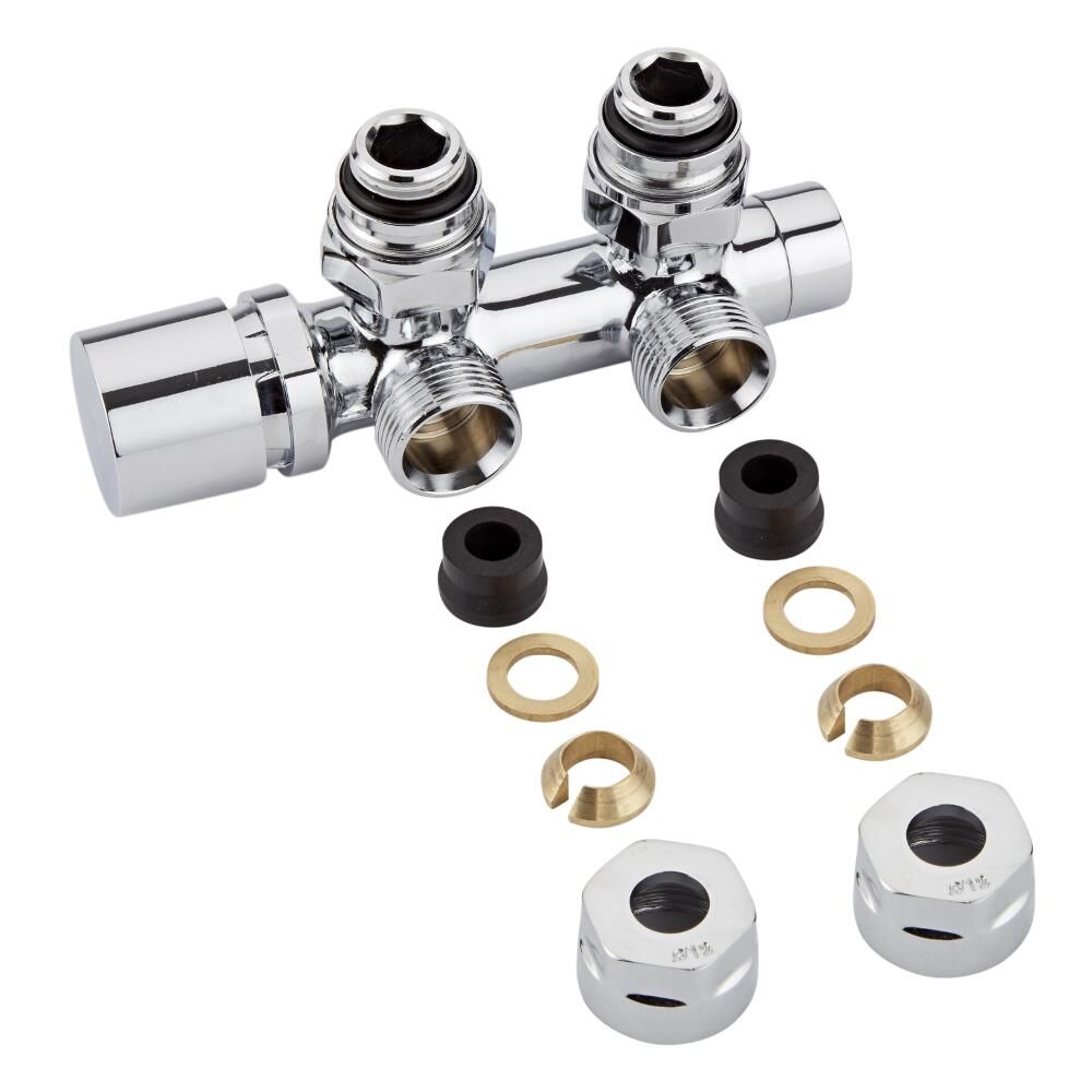 Llaves Angulares Cromadas para Radiador y Toallero de con Adaptadores para Tubos de Cobre 12mm - Multiblock H