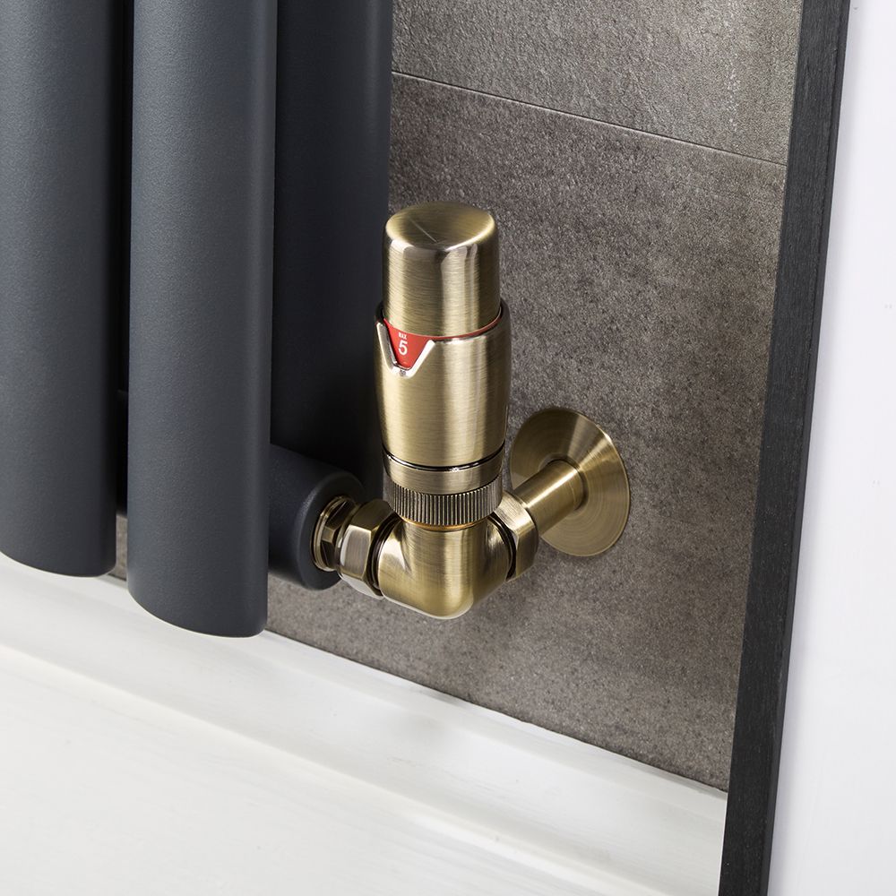 Llaves para Radiador Termostáticas de Esquina y Kit Cubre Tubos - Latón Cepillado