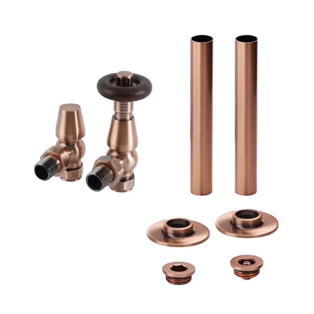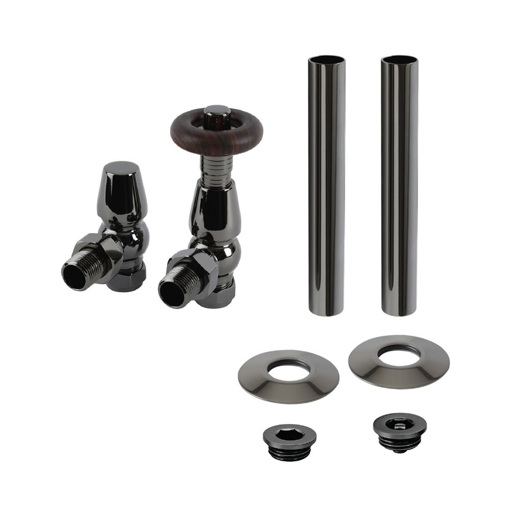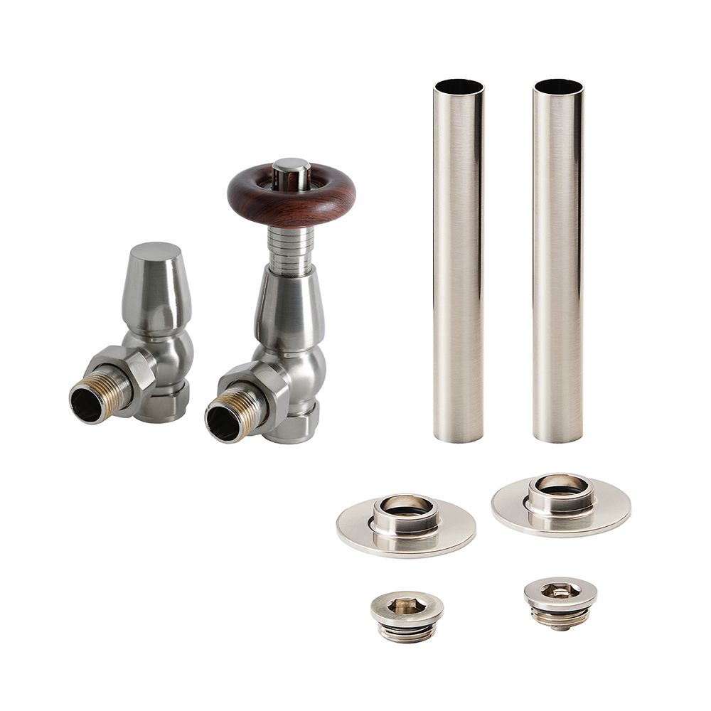 Llaves para Radiador Tradicionales Termostáticas Angulares Radiator y Kit Cubre Tubos - Disponible en Distintos Acabados - Regent