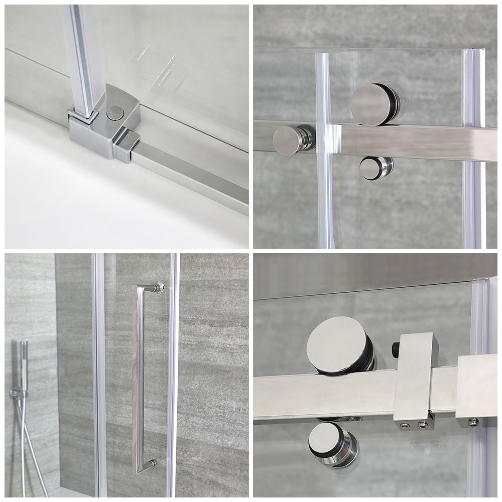 Esta mampara crea un área de ducha cerrada y cuenta con una puerta corredera con un mecanismo rodante para una apertura y cierre suaves. Cuenta además con un vidrio templado de 6 mm para una excelente resistencia y durabilidad, además dispone de un cierre magnético para garantizar que la puerta permanezca cerrada y hermética.