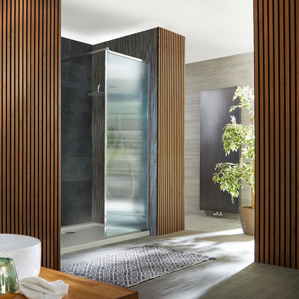 - Mampara de Ducha con Vidrio Acanalado y con Marco Cromado - Florence