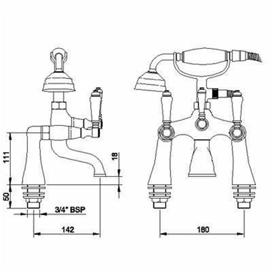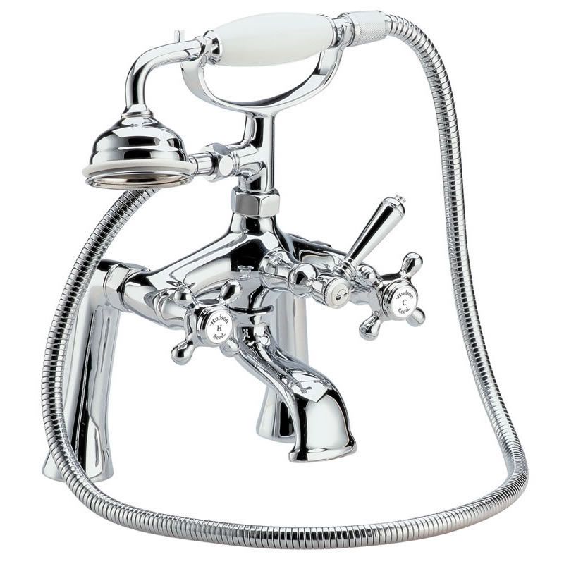 Mezclador de bañera en latón cromado con llenador y ducha de mano, modelo Bloomsbury con torres cubre tuberías le permiten instalar un Mezclador de Ducha o un Mezclador de Bañera sobre su Bañera Independiente si no tiene agujeros para la grifería.