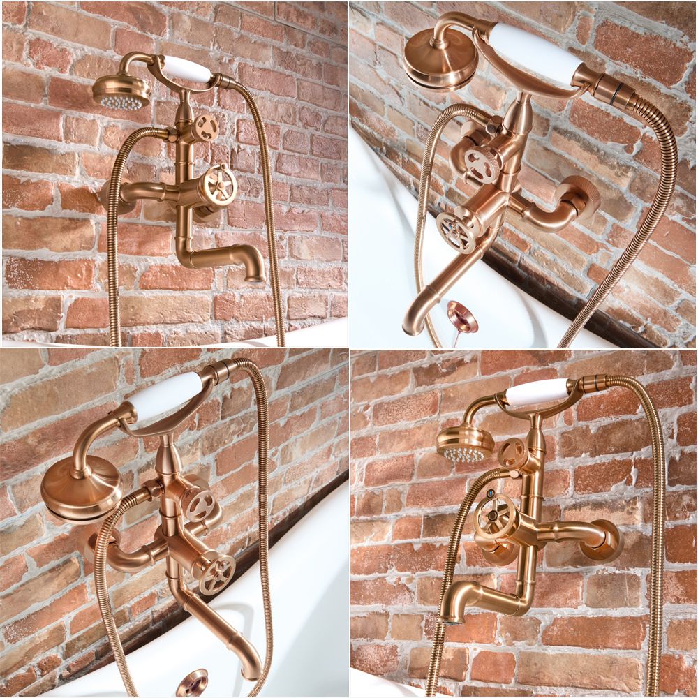 Este grifo para bañera en estilo Steampunk combina la elegancia victoriana con un atrevido elemento industrial para garantizar crear un look único. Este conjunto de bañera viene completo con un telefonillo de ducha, flexo de ducha y este mezclador mural de bañera se caracteriza por su elegante acabado de color cobre satinado y por su elegante pomo circular que le permite controlar el paso del agua y a la temperatura de manera extremadamente sencilla.