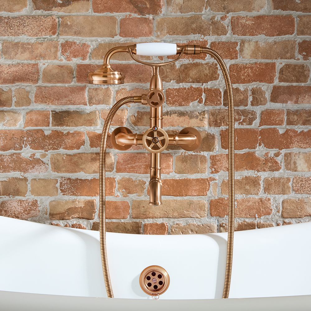 Mezclador de Bañera Mural en Estilo Industrial - Cobre Satinado - Zandra