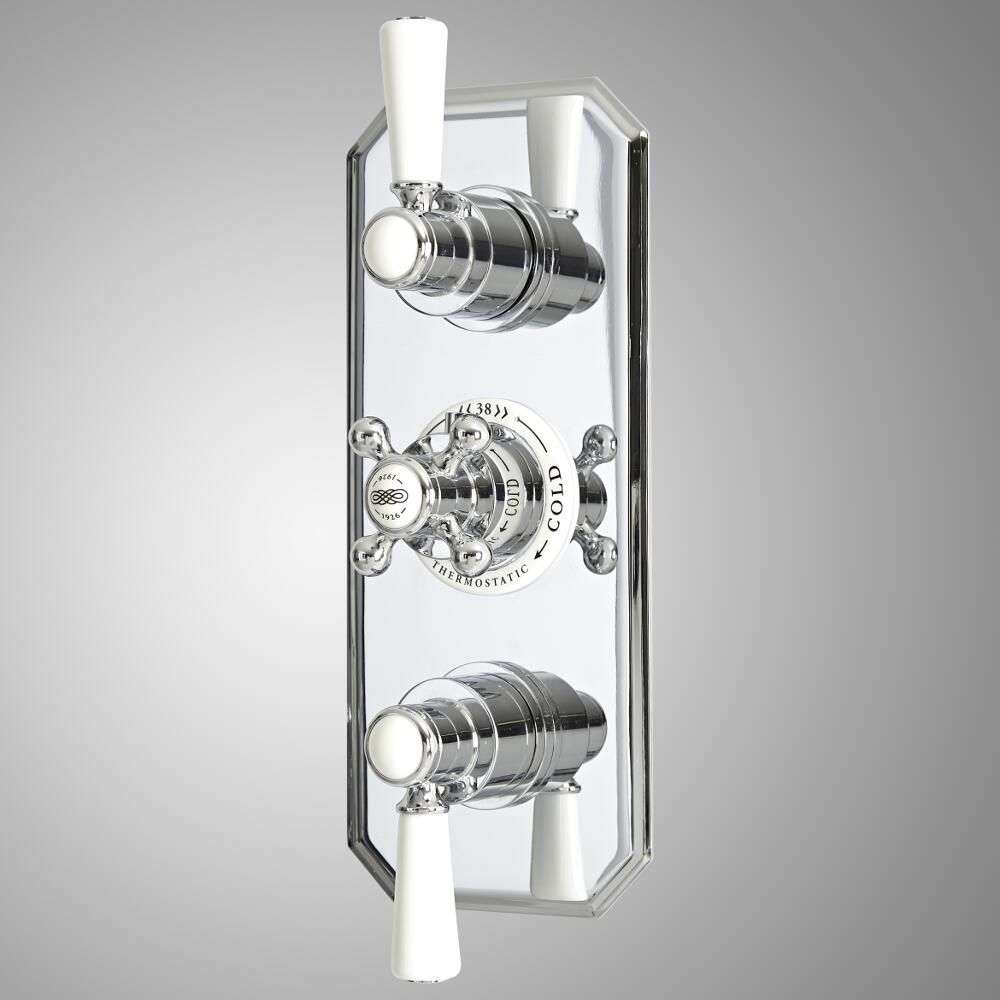 Mezclador de Ducha Termostático Empotrable Tradicional de 3 Salidas con Diseño Triple con Desviador Cromado y Blanco - Elizabeth