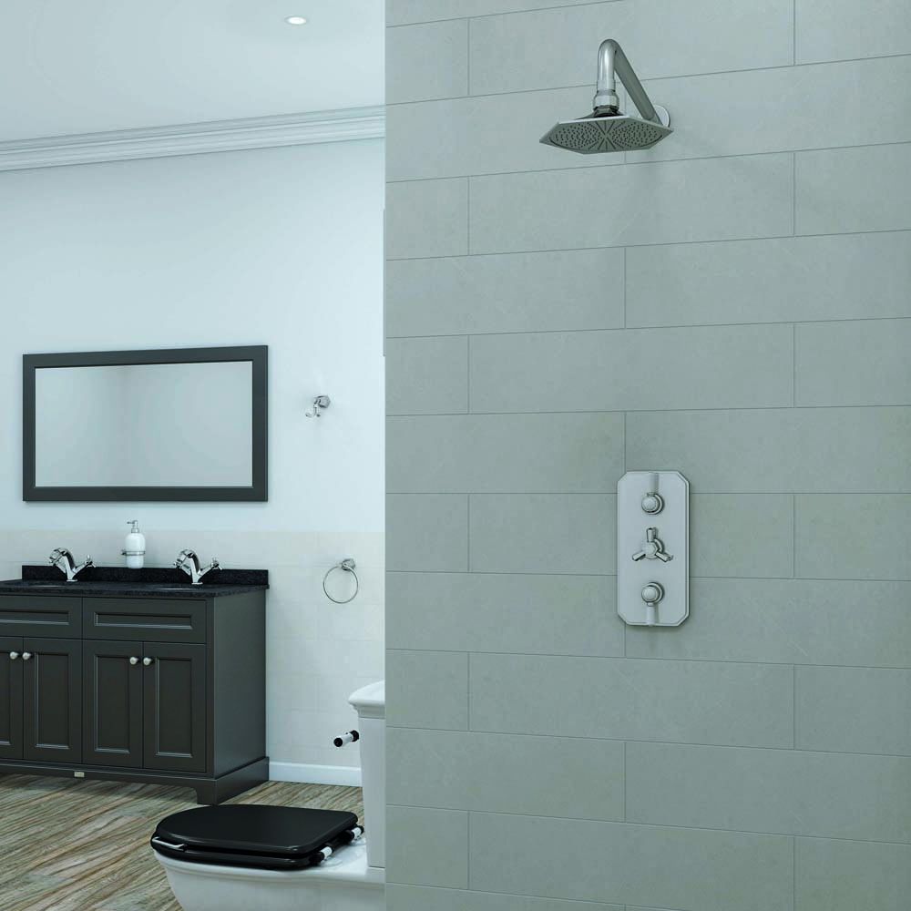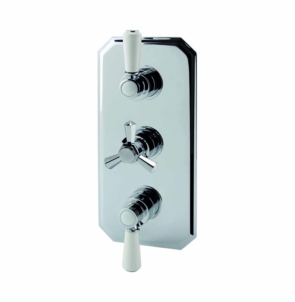 Embellezca aún más su cuarto de baño tradicional con esta elegante llave de ducha mezcladora termostática triple de la colección RAK Washington x Hudson Reed.