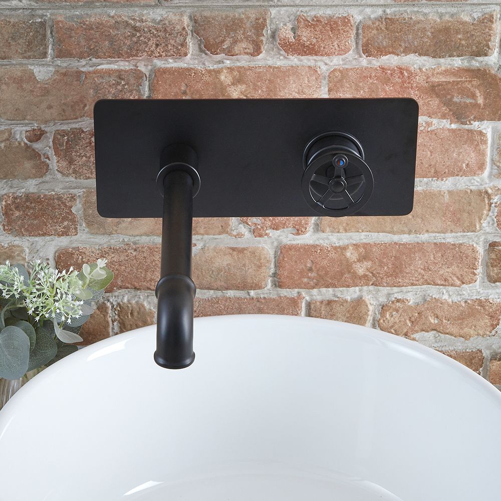La combinación perfecta entre elegancia victoriana y elementos industriales atrevidos, este mezclador de lavabo cuenta con un acabado negro opaco que es altamente y gracias a su diseño mural, la ayuda a optimizar el espacio alrededor del lavabo. Gracias a su robusta construcción en latón sólido, garantiza una excelente resistencia y durabilidad y además, cuenta con tecnología con discos cerámicos para ayudarle a evitar fugas y goteos de agua, garantizándole una vida útil muy larga.