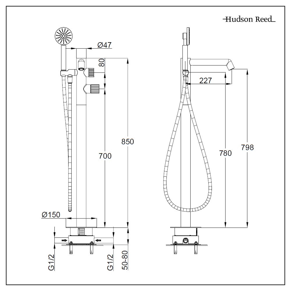- Dimensiones: anch. 150mm x prof. 227mm x alt. 850mm