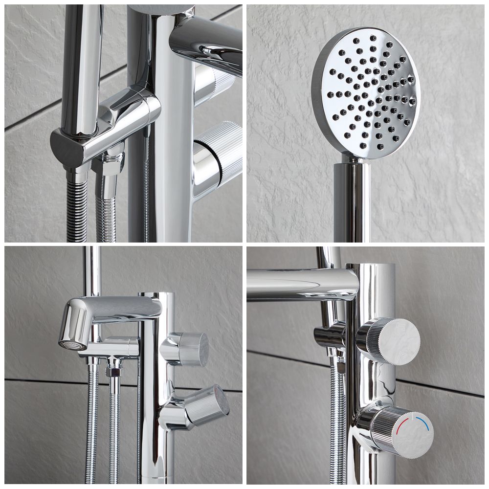 Este conjunto con mezclador de ducha termostático para bañera exenta está disponible en una variedad de acabados para que pueda crear el baño de sus sueños - simplemente haga su selección de las opciones disponibles.