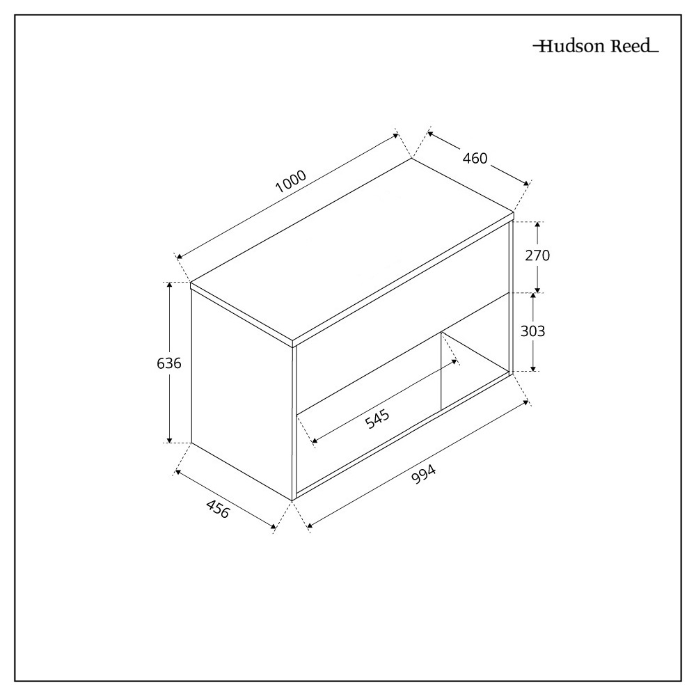 - Dimensiones del mueble con repisa abierta: anch. 1000mm x pro. 460mm x alt. 636mm