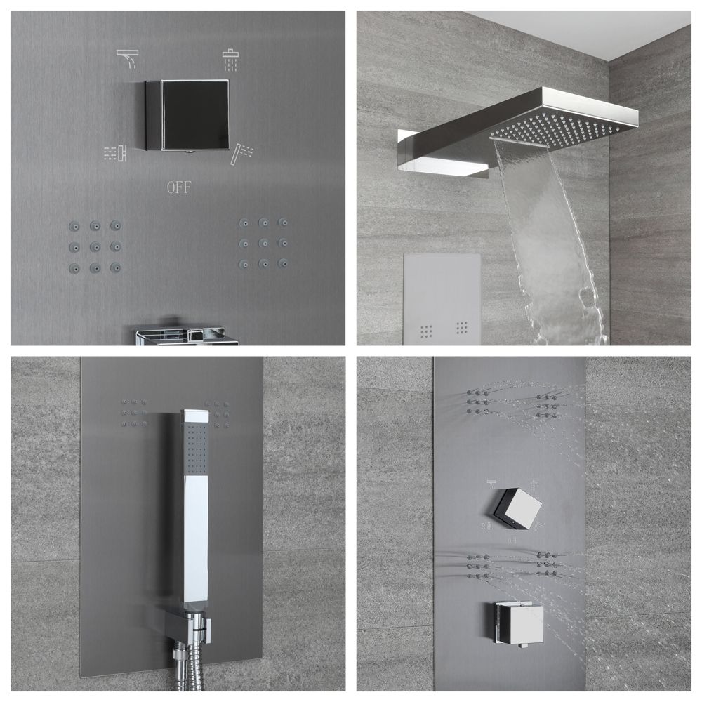 Panel de Ducha Termostático Hidromasaje Empotrado Minimalista con Alcachofa a Cascada y Lluvia - Gris Metalizado - Ryukyu