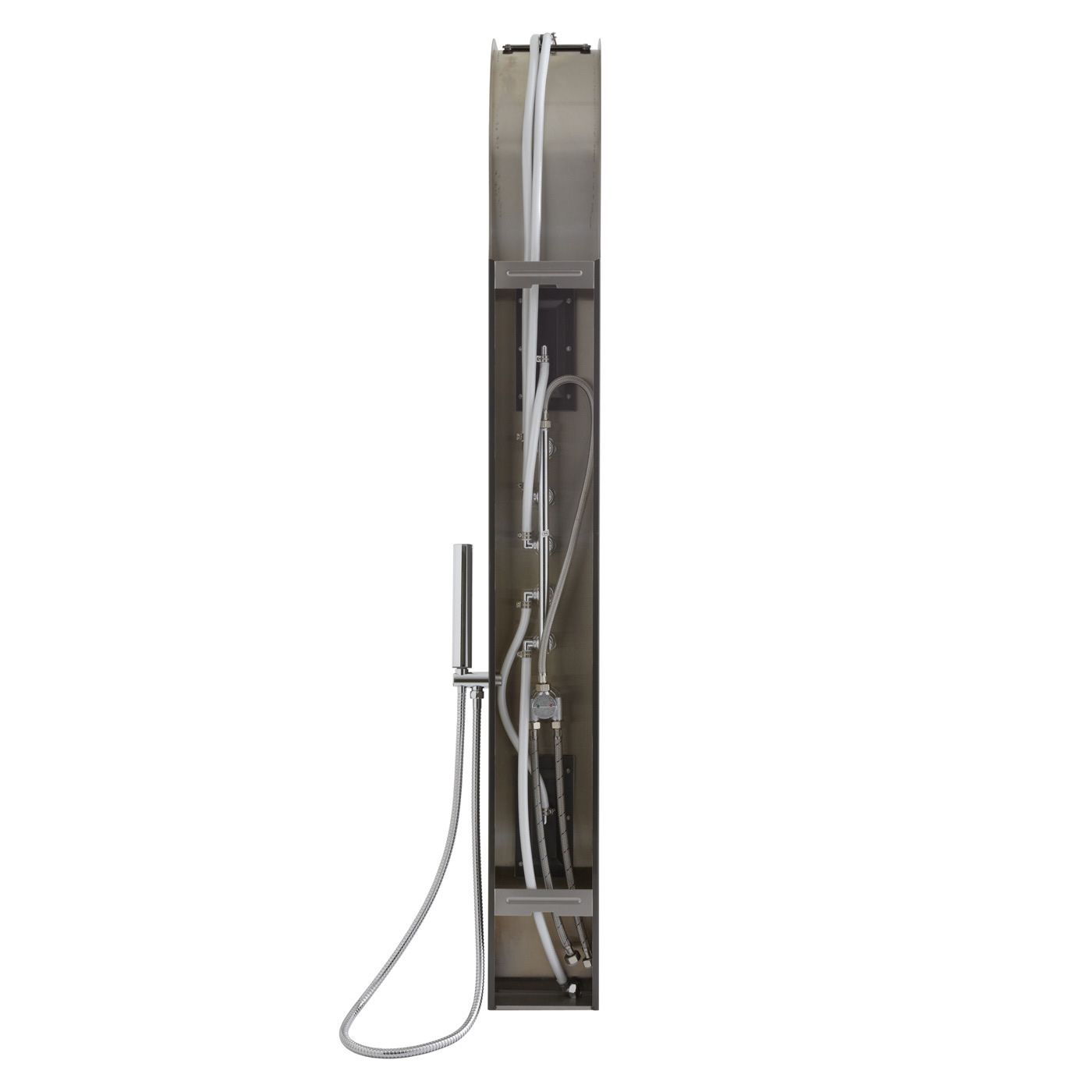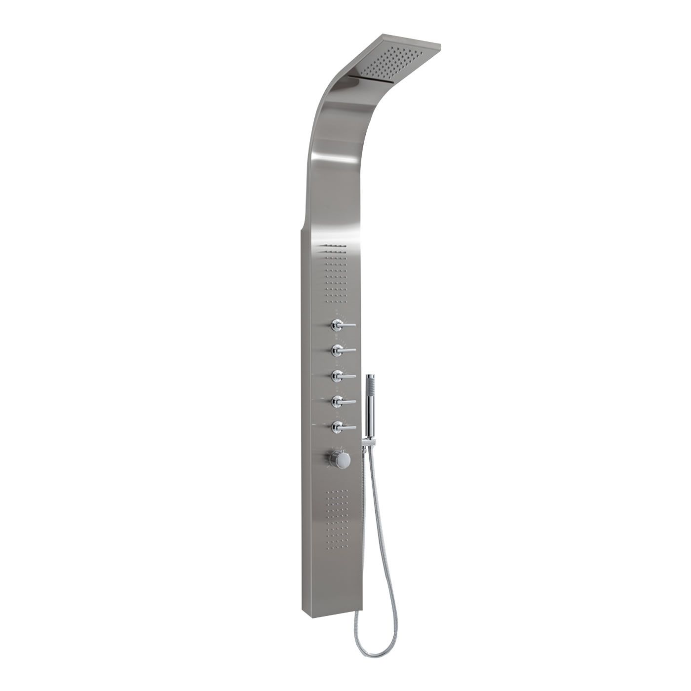 Panel de ducha hidromasaje multifunción, con jets de ducha, alcachofa efecto lluvia y cascada con ducha de mano.