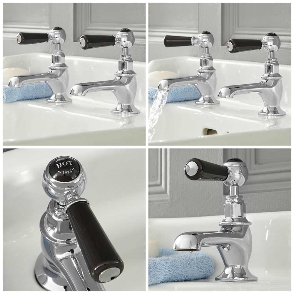 Par de Grifos para Lavabo Estilo Tradicional Color Negro y Cromado con Manijas a Palanca - Elizabeth