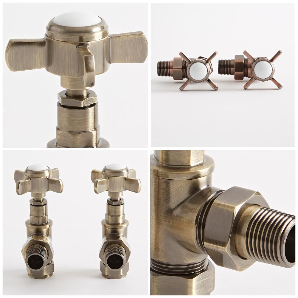 Agregue esos últimos toques a su radiador o radiador toallero en estilo tradicional gracias a estas elegantes llaves angulares en acabado latón cepillado para radiador o radiador toallero.