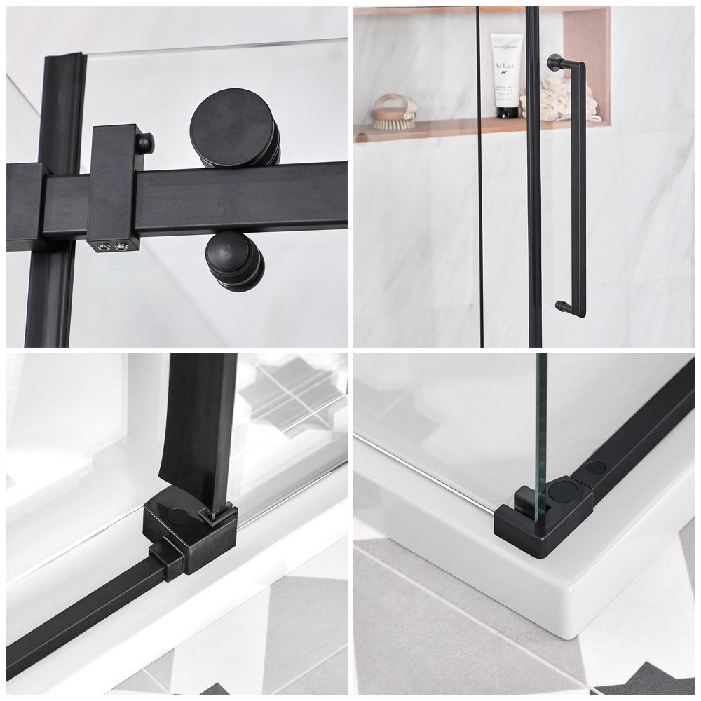Puerta de Ducha Corredera Negra Sin Marco para Mampara de Ducha - Disponible en Distintas Medidas y con Panel Lateral - Nox