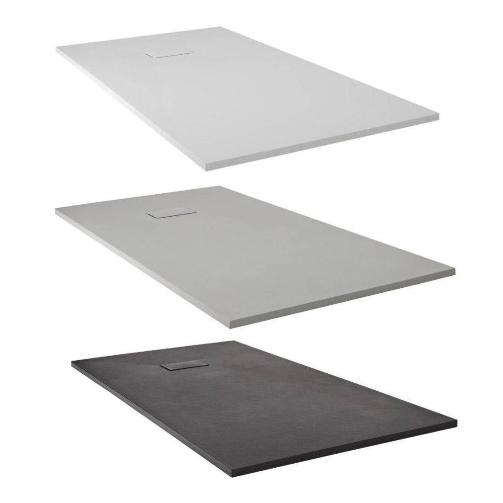 - Elección de acabados para platos de ducha que incluyen antracita, gris claro y blanco