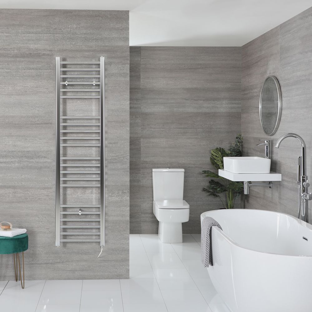 Modernice su cuarto de baño y disfrute del lujo de toallas secas y calentitas gracias a este elegante radiador toallero eléctrico de 1600mm x 400mm cromado de la gama Kent.