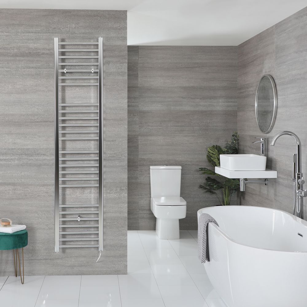 El radiador toallero eléctrico cromado de 1800mm x 400mm de la gama Kent garantiza agregar un toque de lujo a su baño y mantendrá sus toallas secas y calentitas al mismo tiempo.