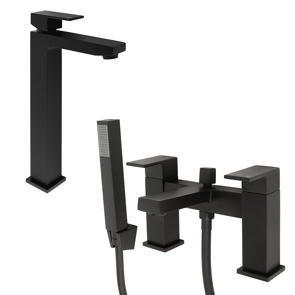 Set de Grifería de Baño con Mezclador de Lavabo Alto Moderno Cuadrado Completo con Mezclador de Bañera - Selección de Acabados